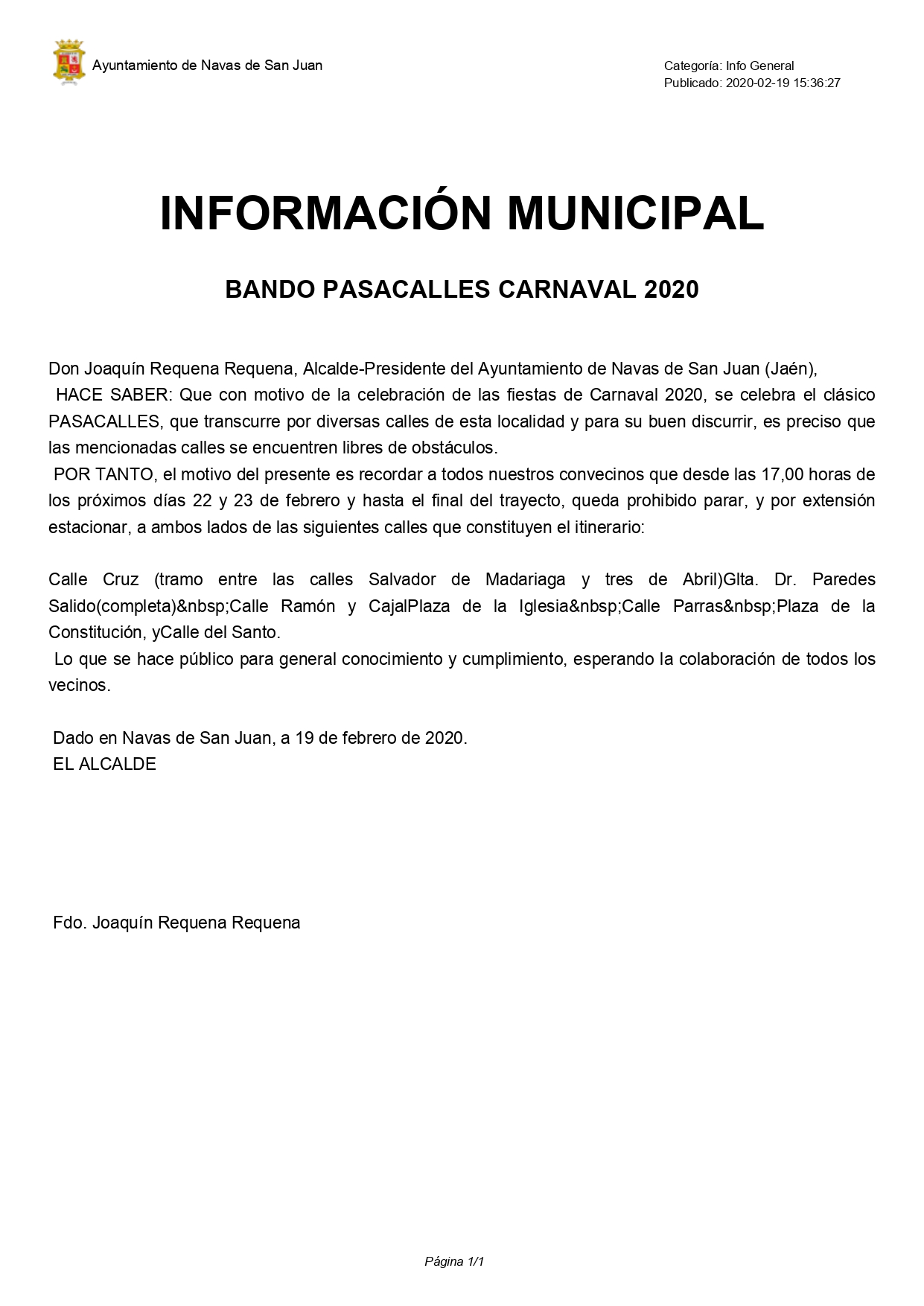 Saluda del Alcalde